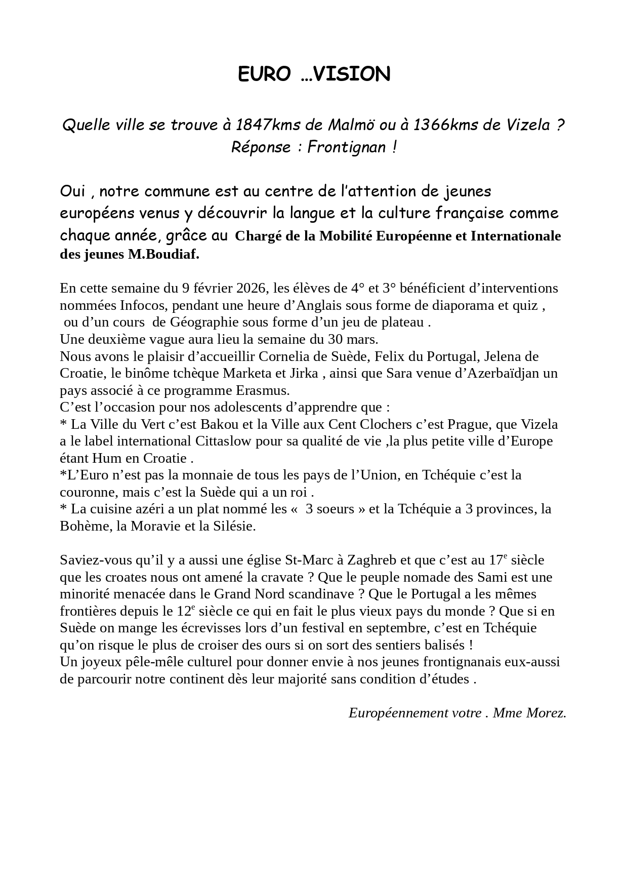 Oui , notre commune est au centre de l’attention de jeunes européens venus y découvrir la langue et la culture française