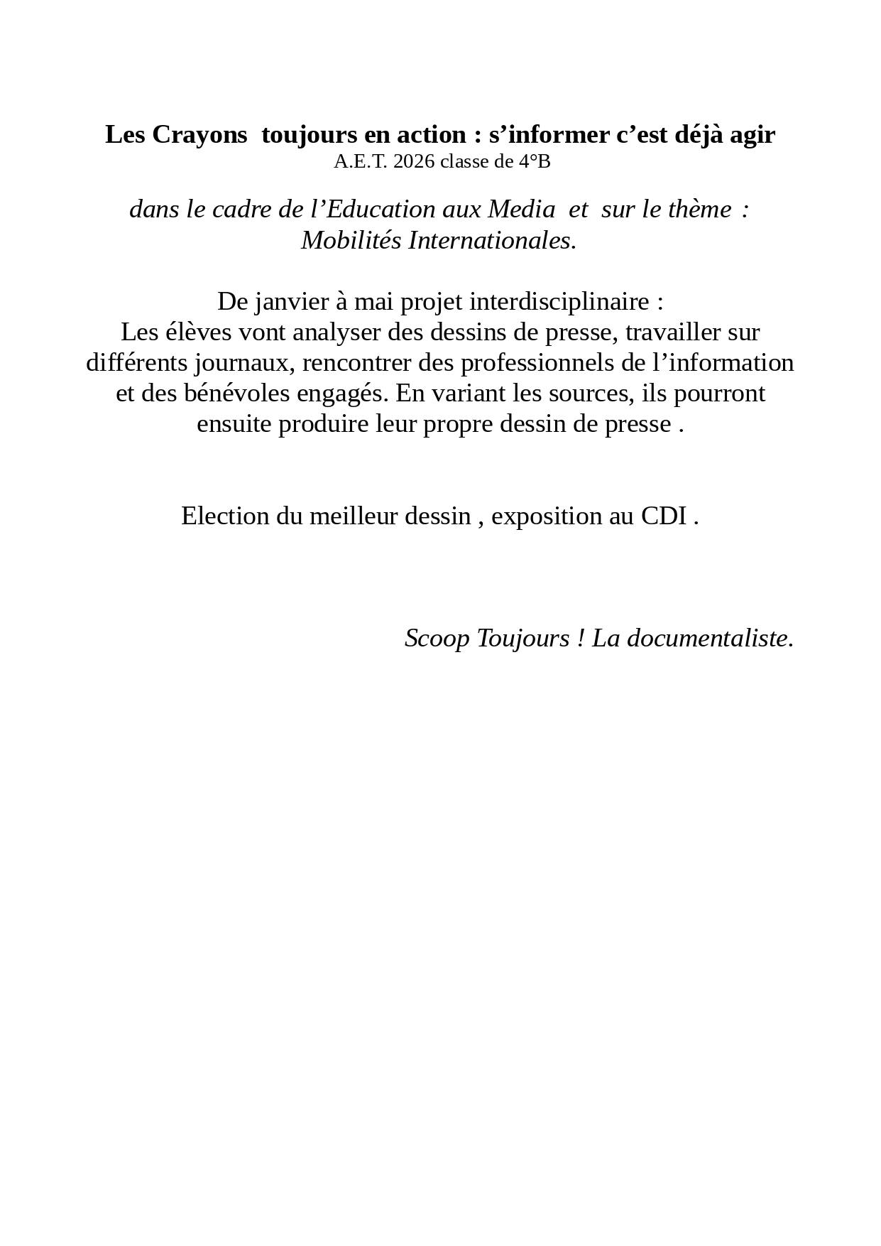 dans le cadre de l’Education aux Media et sur le thème : Mobilités Internationales.