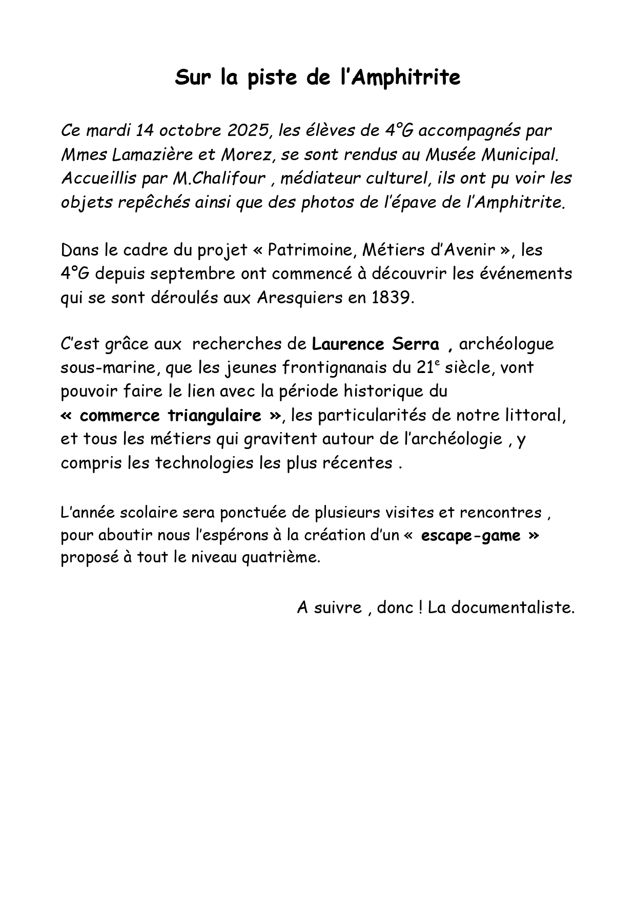 Sur la piste de l’Amphitrite